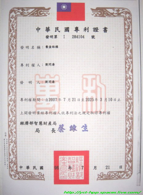- 本產品已獲得中華民國發明專利第『I 284104號』。